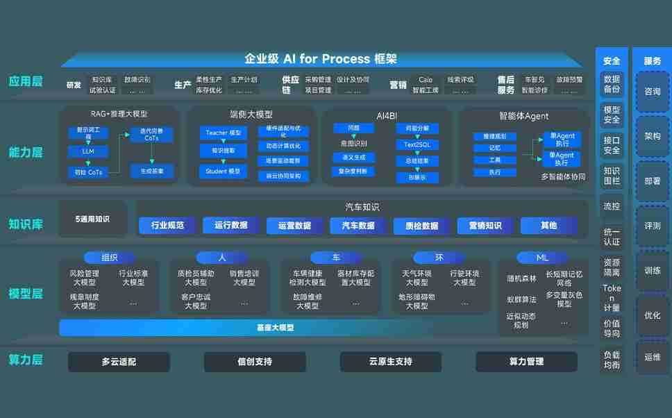 英国365上市公司问学智车解决方案是一套基于AI技术的汽车行业智能化系统,,覆盖从底层算力到顶层AI应用的全栈方案。。。。方案由算力层、、、、模型层和应用层组成:算力层,,方案支持多种一体机配置,,,具备云端灵活部署、、多云适配以及动态优化计算资源的能力;模型层,,,英国365上市公司问学平台版提供了企业级AI应用一站式构建与管理平台,,支持基于后训练强化技术的汽车企业专属模型的训练、、、评测和运营;应用层,,,,英国365上市公司问学DeepSeek版提供包括超级员工、、、、智能招采、、、智能营销、、、、智能客服、、AI for BI等一系列解决方案,,,可助力汽车行业实现数字化转型,,让管理更智能、、、、响应更敏捷。。。